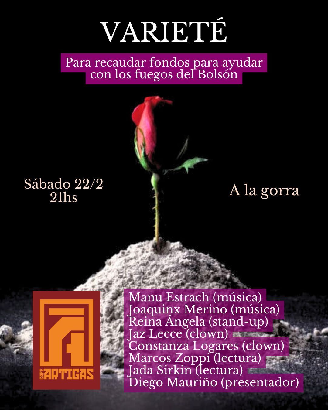 Si estás por Buenos Aires, el sábado 22 de febrero estoy organizando esta varieté para juntar un dinero para apoyar a la gente del sur con los incendios. Es a la gorra y el grupo de invitadxs es demasiado hermoso! Será en Café Artigas, en Artigas 1850, CABA. A las 21hs.
