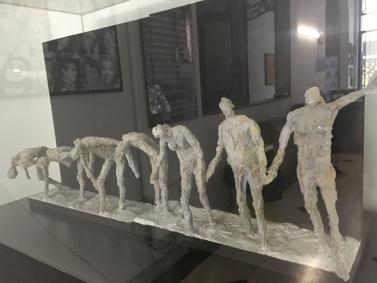 Después de firmar los papeles para oficializar mi participación en una cooperativa teatral, me despedí del bostezador y le pregunté si podía sacar una foto de una escultura que tienen detrás de una vitrina. Divido la secuencia en estos pasos:
